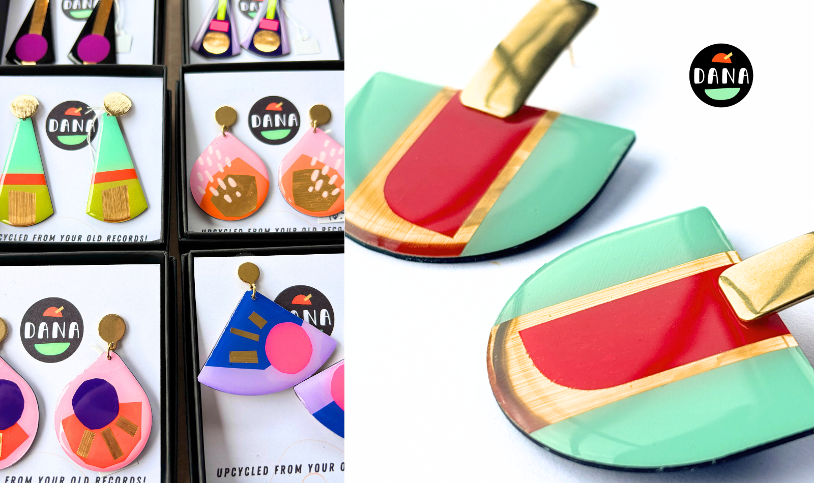 Make a statement with DANA's latest eco conscious recycled vinyl record jewellery...