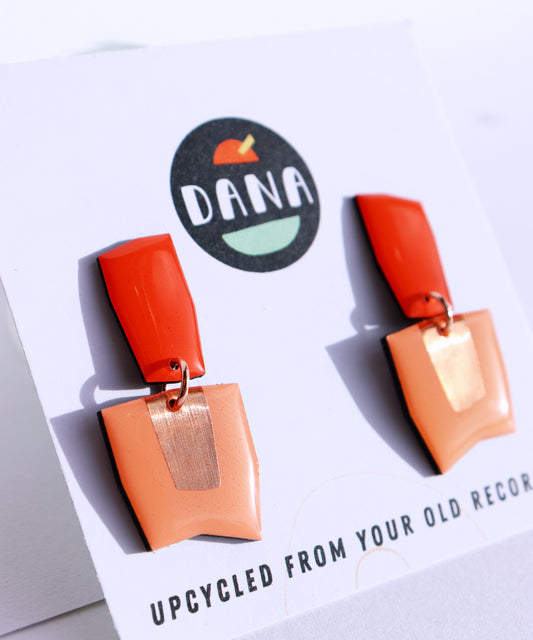 CONNIE NO.1 in vibrant red and lush gold / upcycled chic earrings