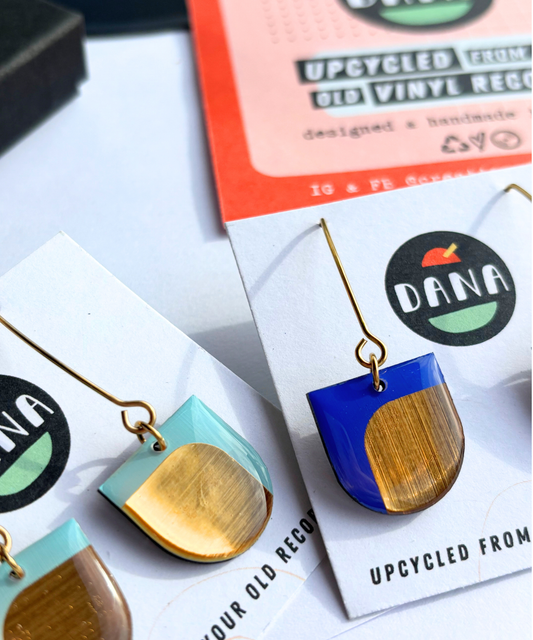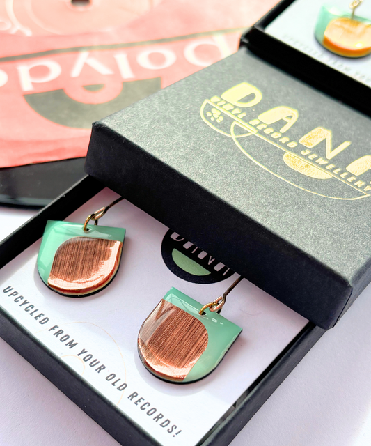 ELLA in minty aqua and GOLD / vinyl record earrings