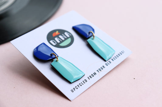 Michael Jackson / 1981 / ENDLESS LOVE compilation / stylish geometric vinyl earrings in aqua / ONE OF A KIND