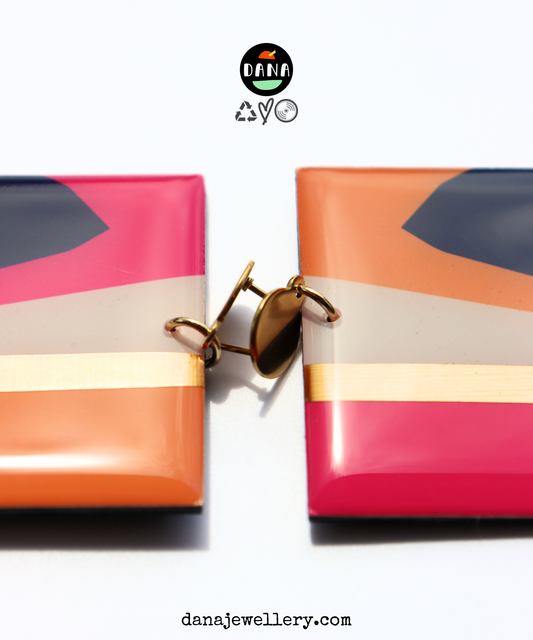 NIKKI NO.2 in pink, navy, yellow, gold / statement vinyl record earrings