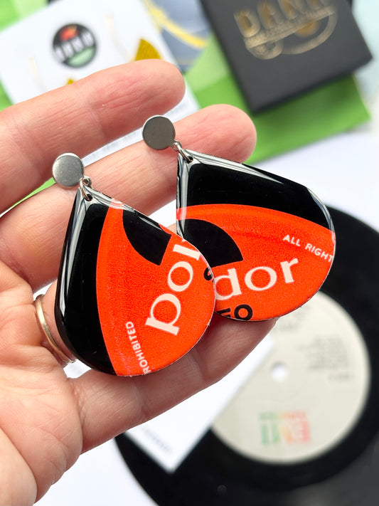 Music for Pleasure / upcycled chic recycled vinyl record earrings in black and red / ONE OF A KIND