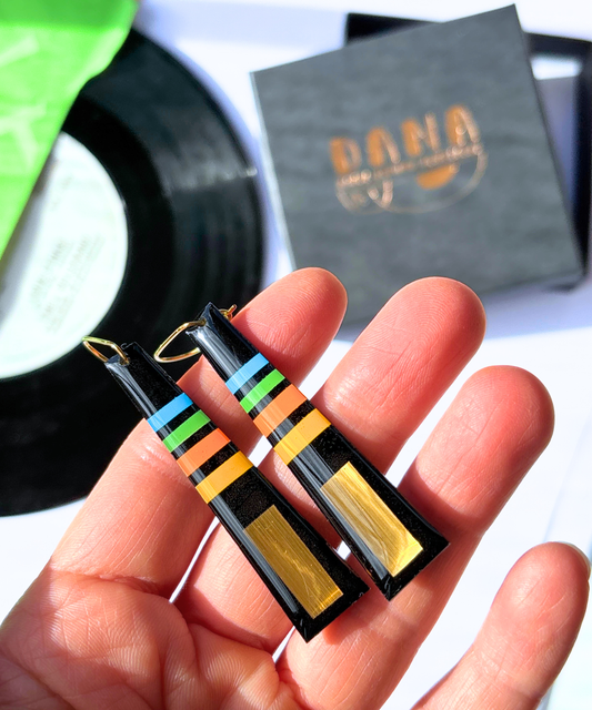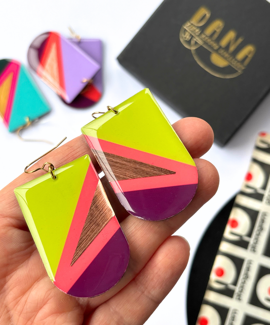 LOU NO.1 in black, hot pink, vibrant orange, green, yellow / modern geometric earrings