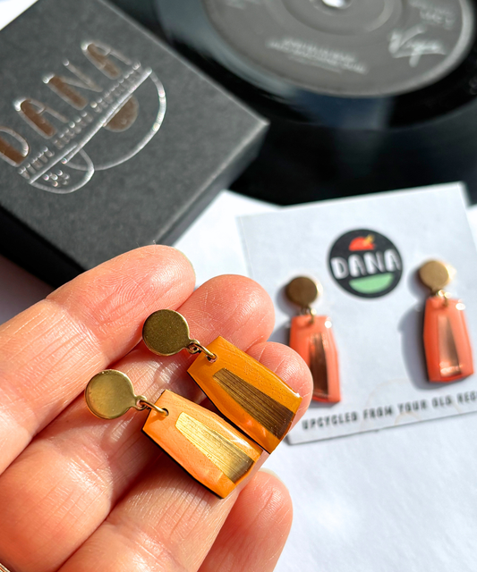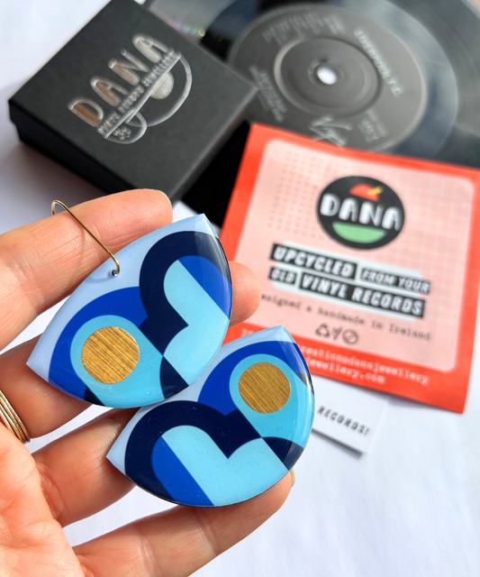 Make a statement with DANA's latest sustainable recycled vinyl record jewellery designs. Show off your creative side with these bold, colourful, contemporary eco conscious designs handmade in Ireland.