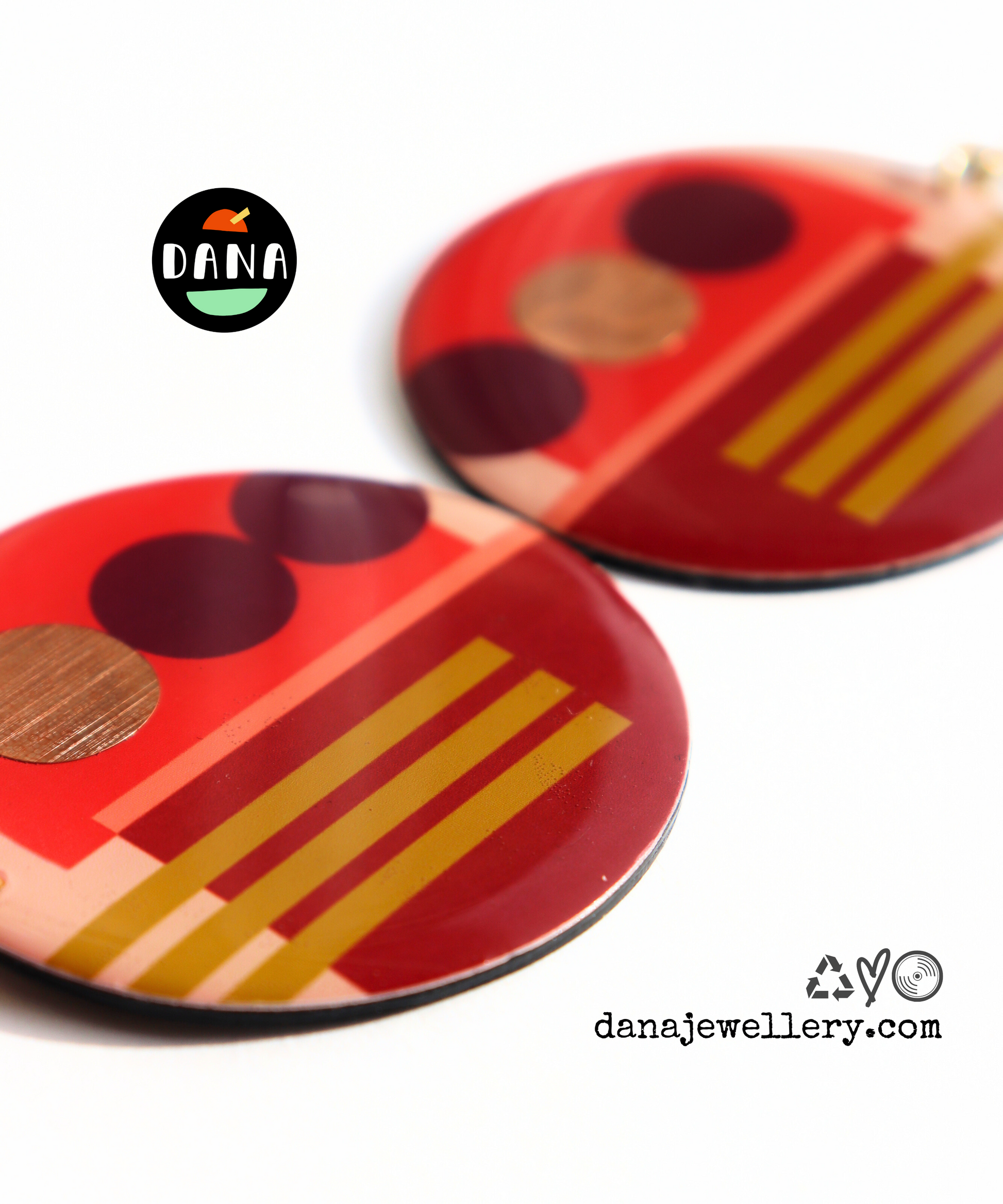 DANA jewellery designs are made using unwanted and beat up vinyl records saved from ending up in landfill. Rubbish has never looked better.