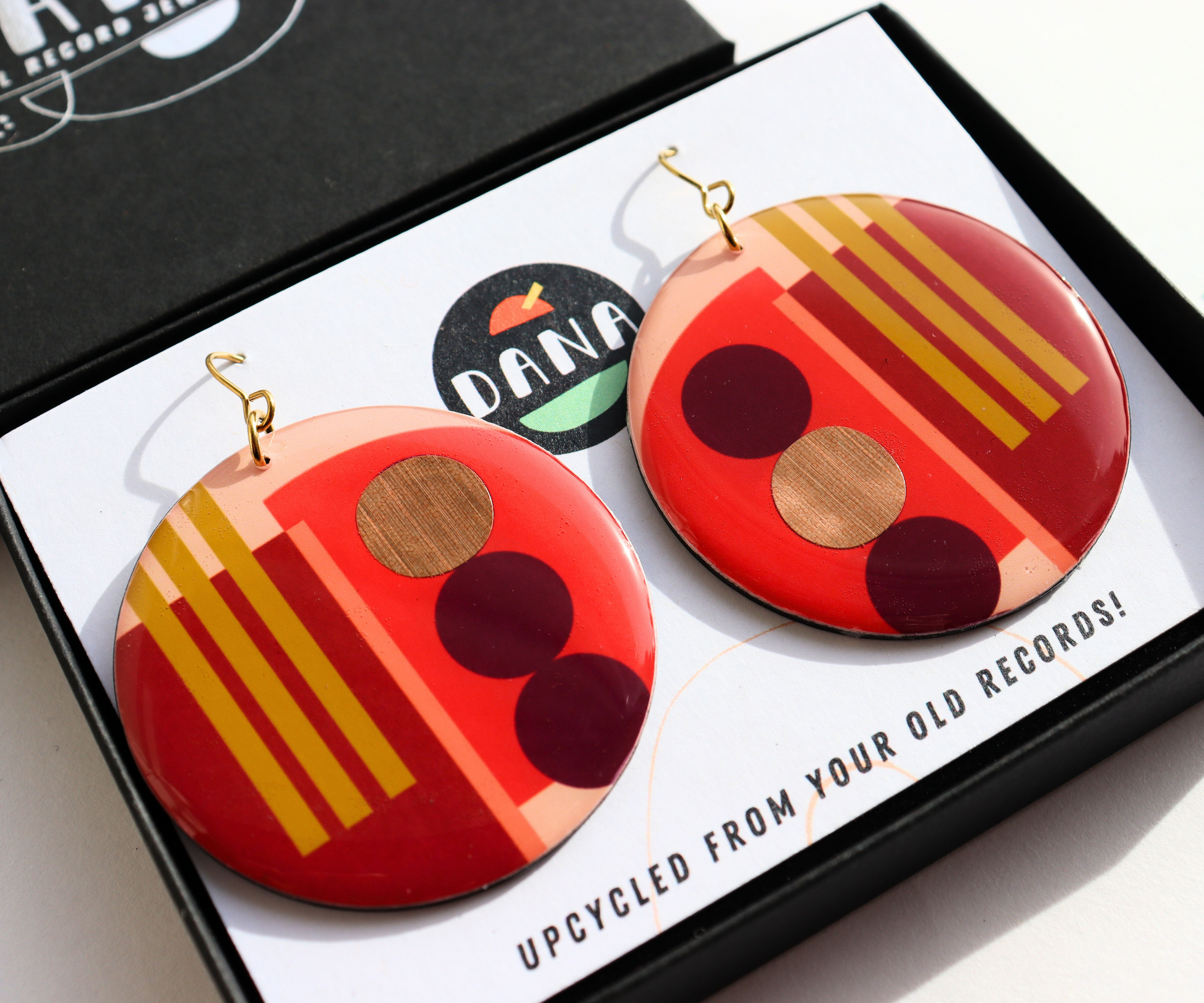 They are a fab present for the vinyl enthusiast in your life, the lover of statement art jewellery or upcycled contemporary Irish jewellery design.