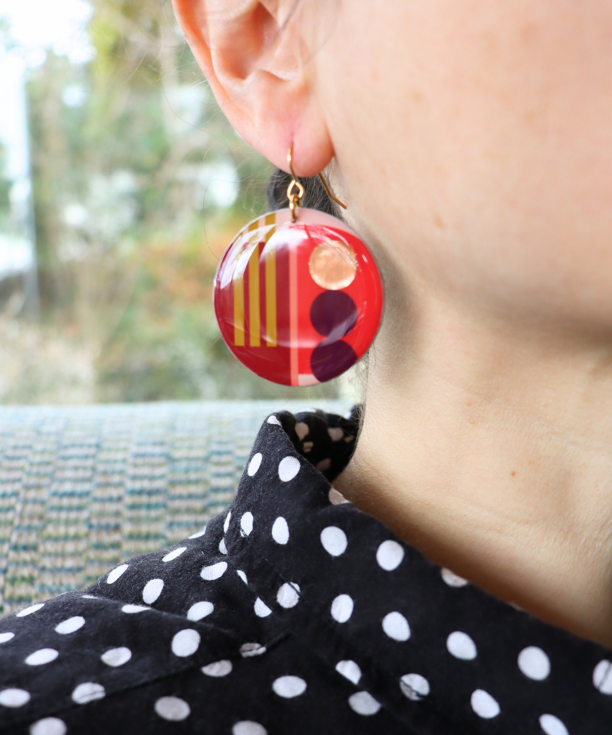 ▹admire the original vinyl record in all its groovy glory at the back of the earrings