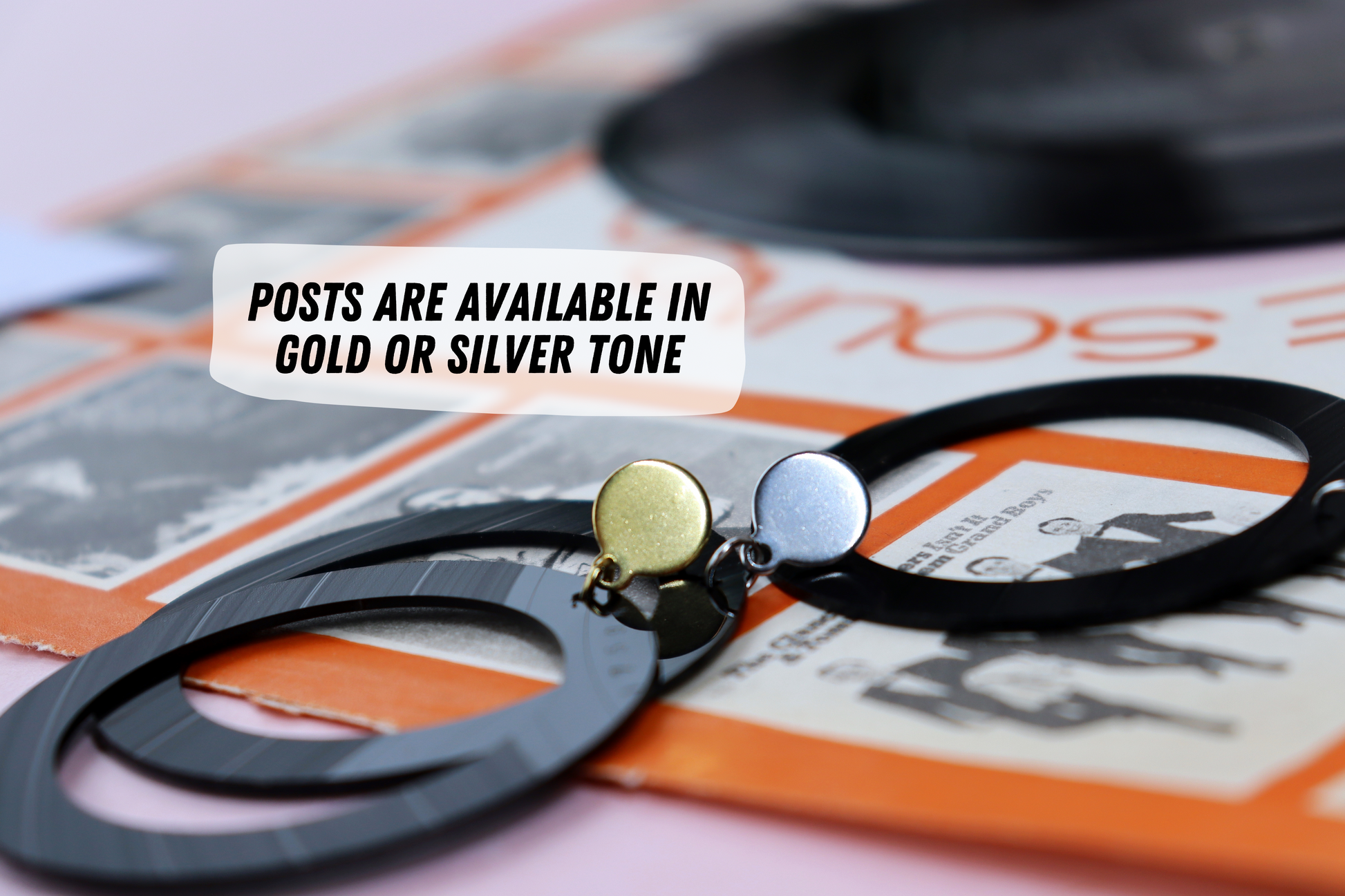 The large black vinyl record star earrings are big and bold and oh so very groovy... literally. Available on gold or silver tone ear posts (see 5th photo) just pick your favorite.