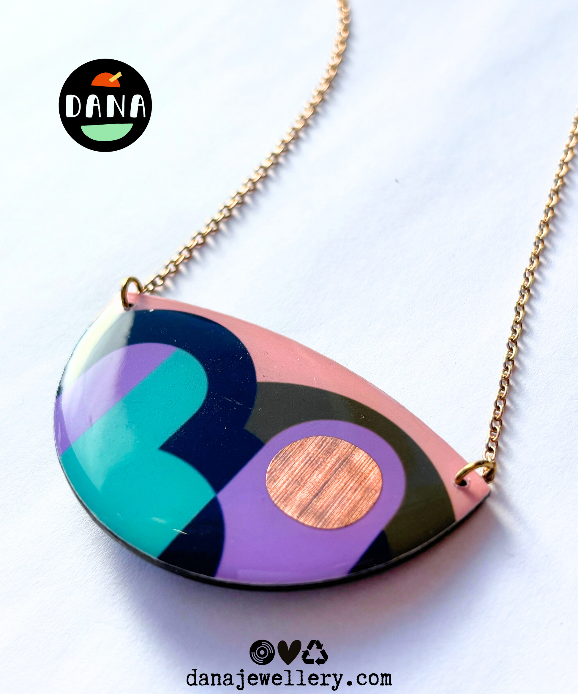 This necklace is a fab present for the vinyl enthusiast in your life, the lover of statement art jewellery or upcycled contemporary Irish jewellery design.