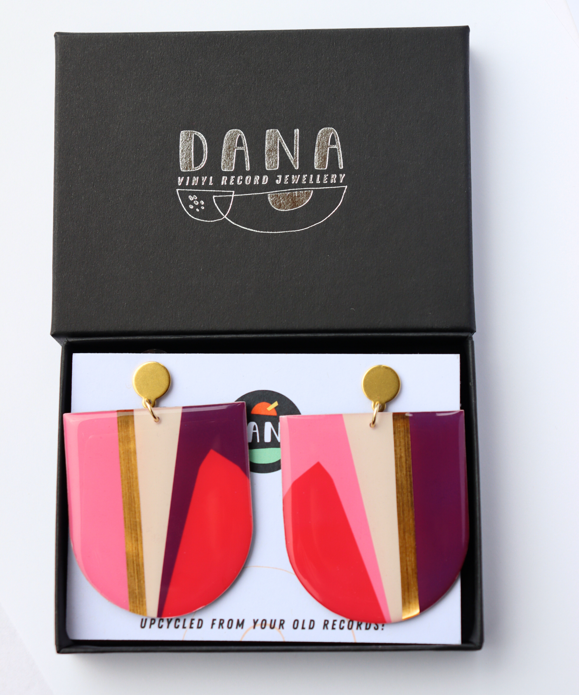 DANA jewellery designs are made using unwanted and beat up vinyl records saved from ending up in landfill. Rubbish has never looked better.