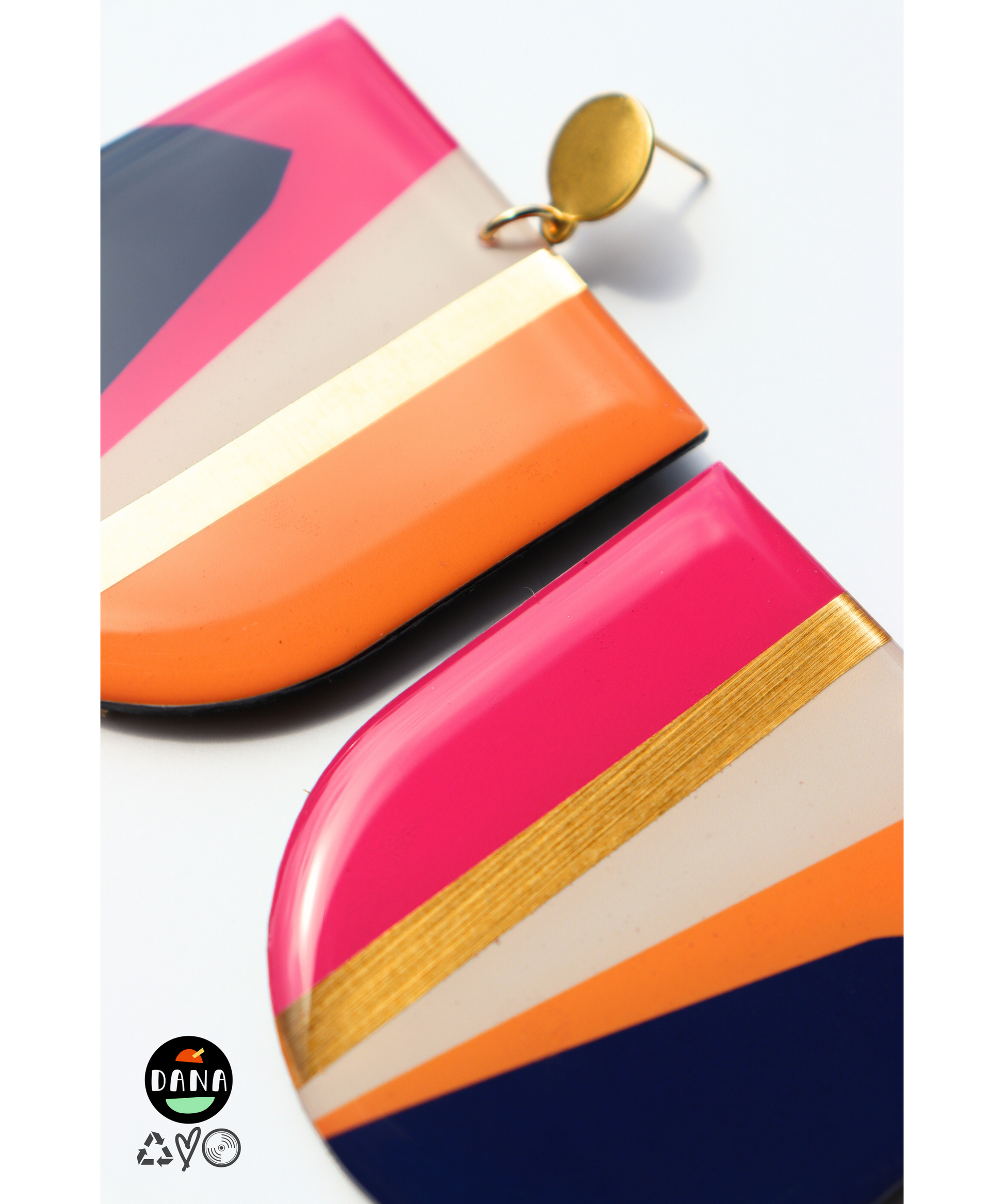 NIKKI NO.2 in pink, navy, yellow, gold / statement vinyl record earrings