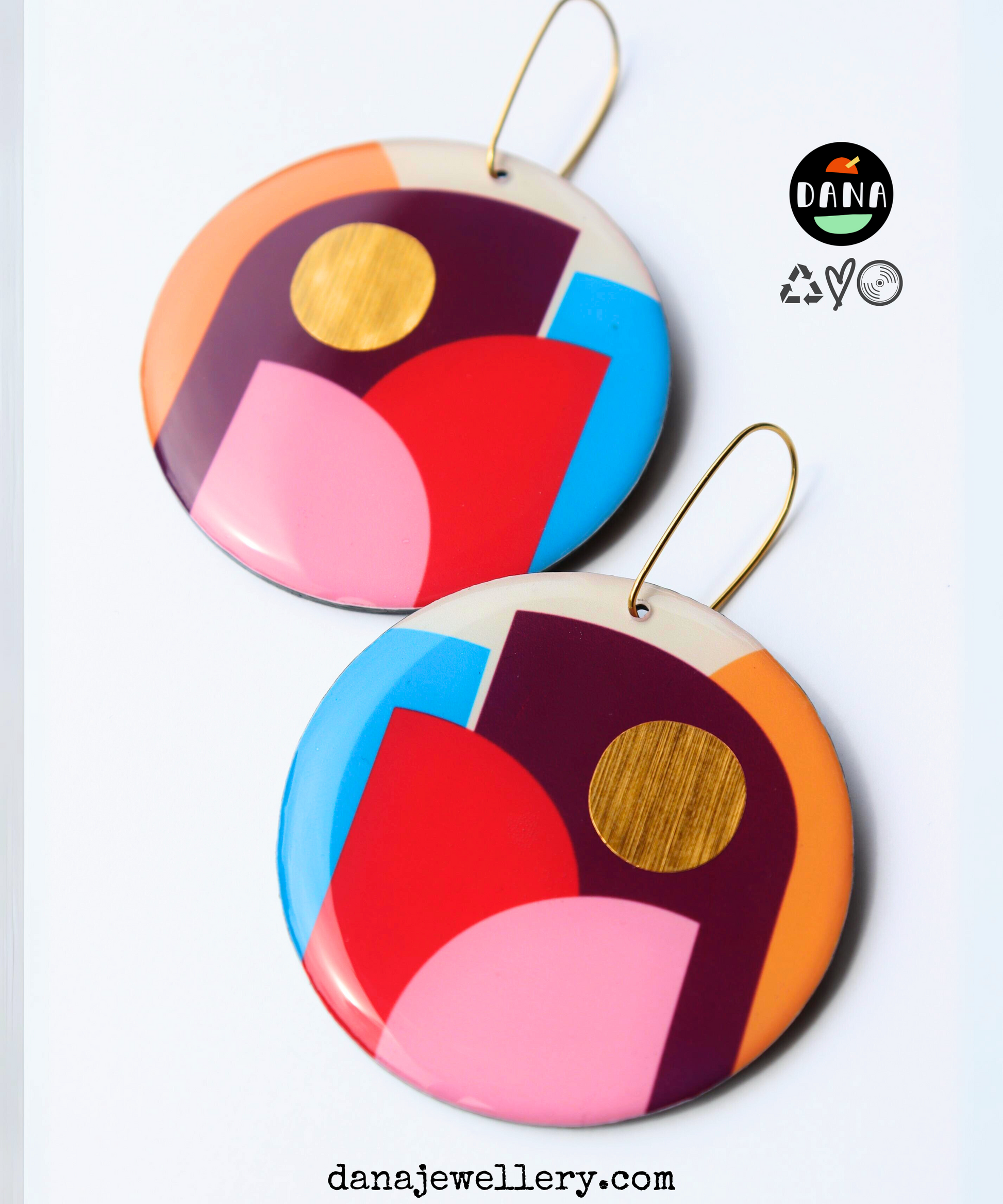 DANA jewellery designs are made using unwanted and beat up vinyl records saved from ending up in landfill. Rubbish has never looked better.